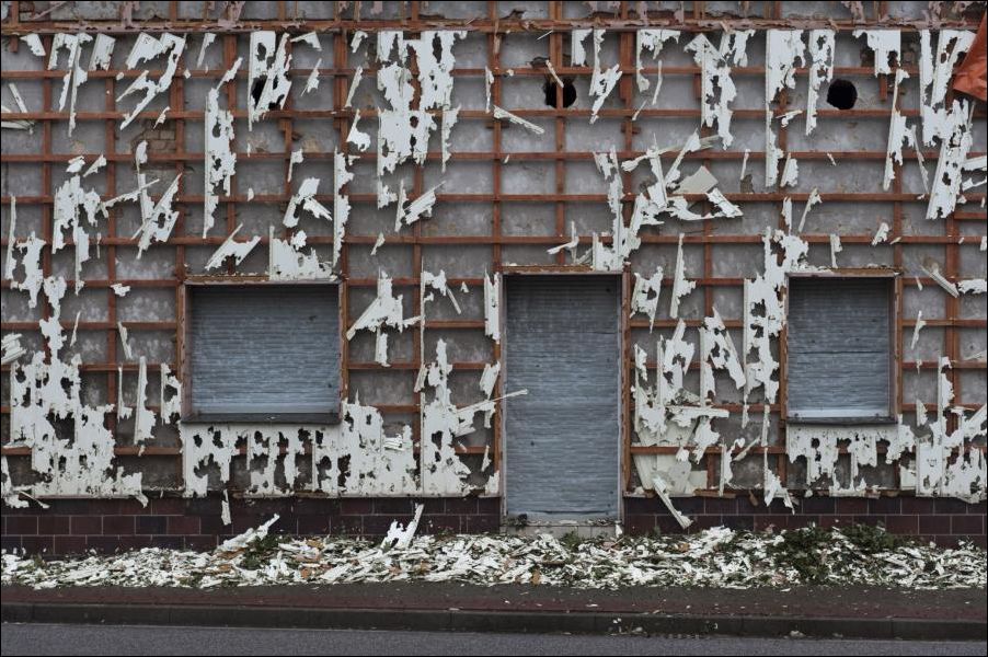 Очевидцы рассказывают, что дома выглядят так, будто их обстреливали из пулеметов.