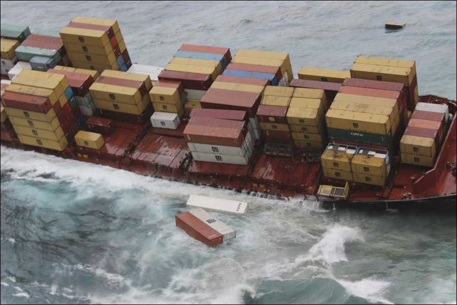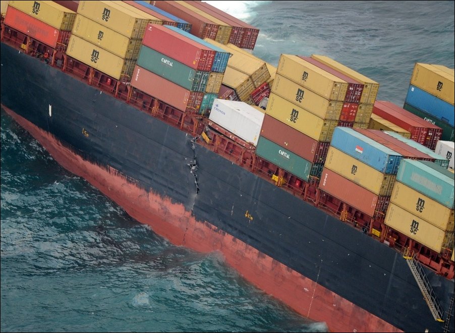 Уже конкретная трещина по борту ползет!Фигня-груз,он застрахован!А,вот,если в воду попадет мазут и дизель,то Новой Зеландии мало не покажется! :shock: А грузы там могут быть от зубных щеток,до наукоёмкой электроники!