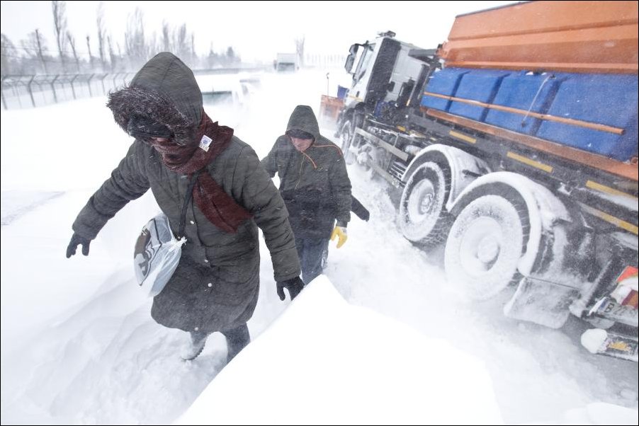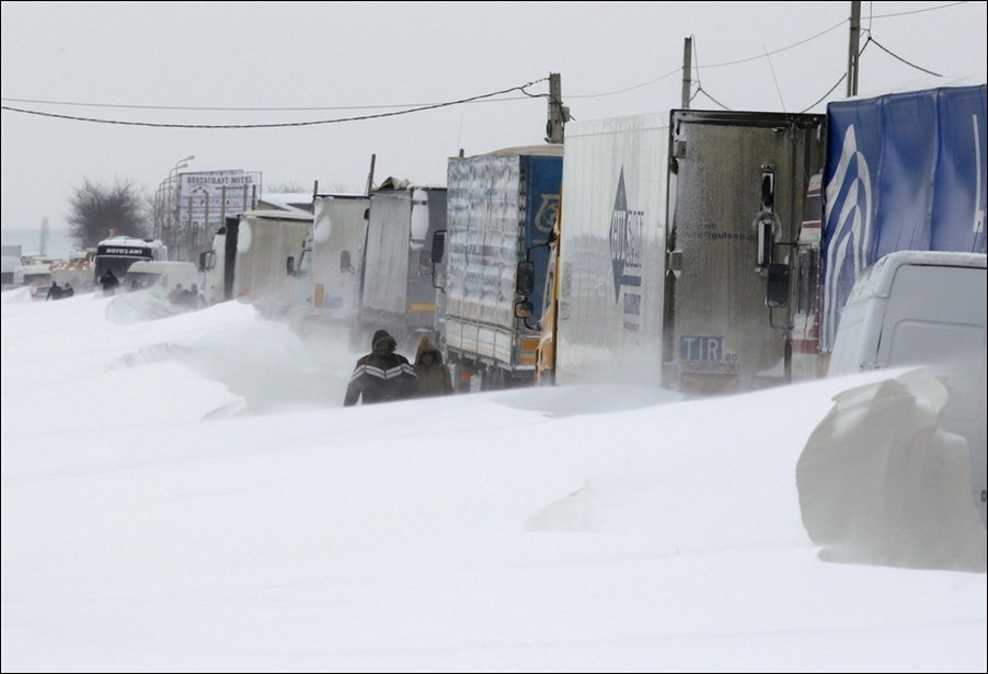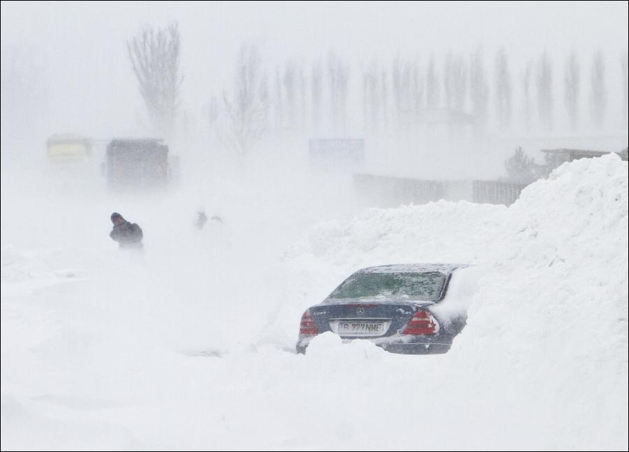 Юг Румынии парализовал сильнейший снежный шторм. Трассы завалило снегом, сотни людей оказались в ловушке в собственных автомобилях.