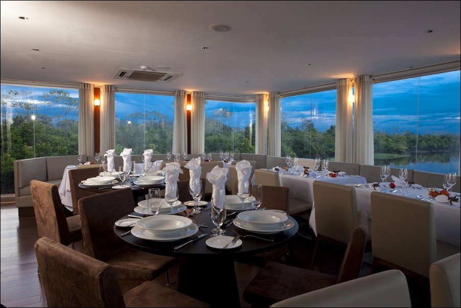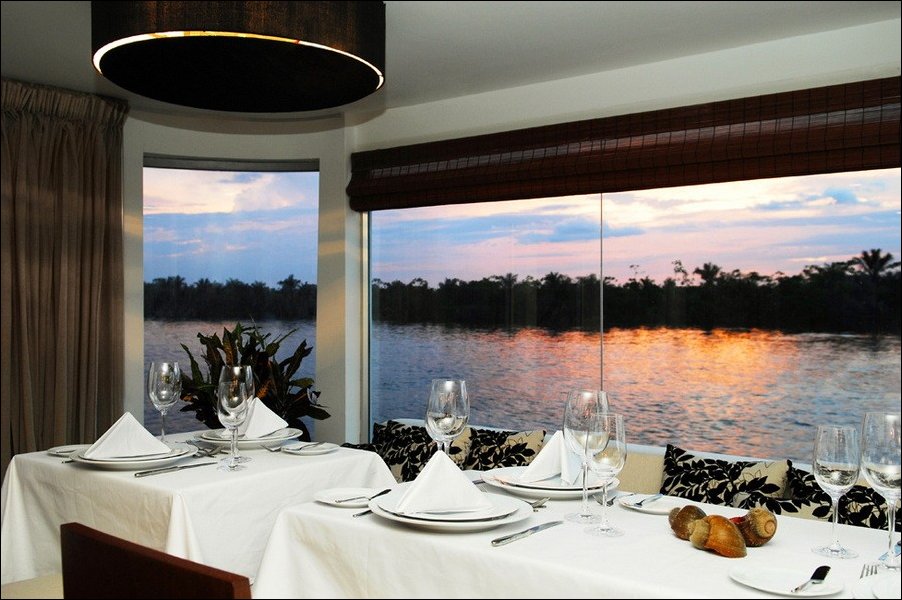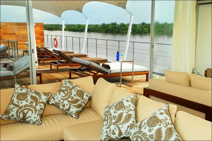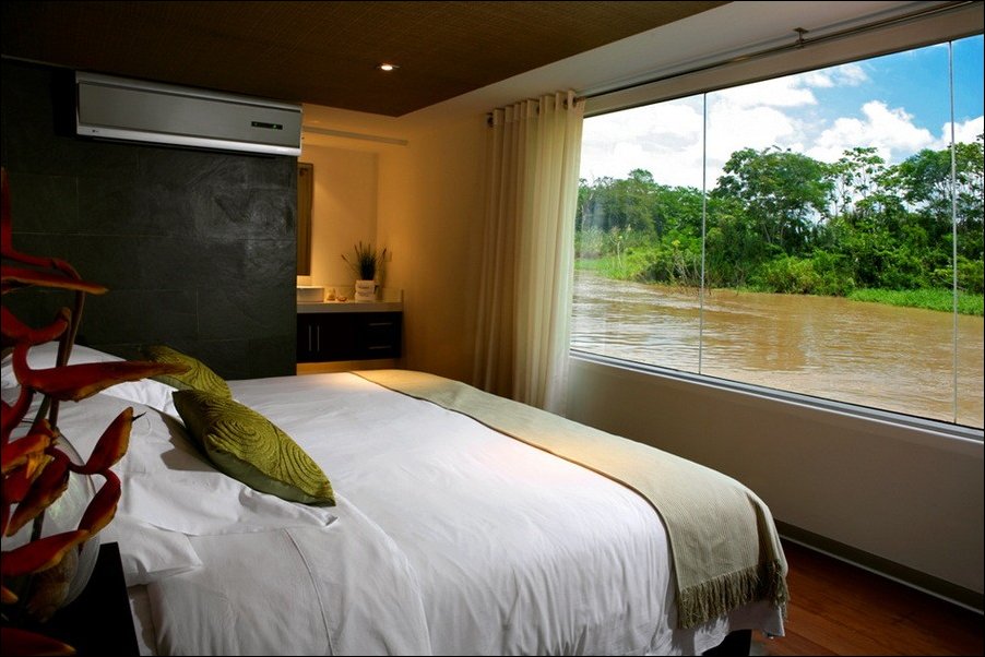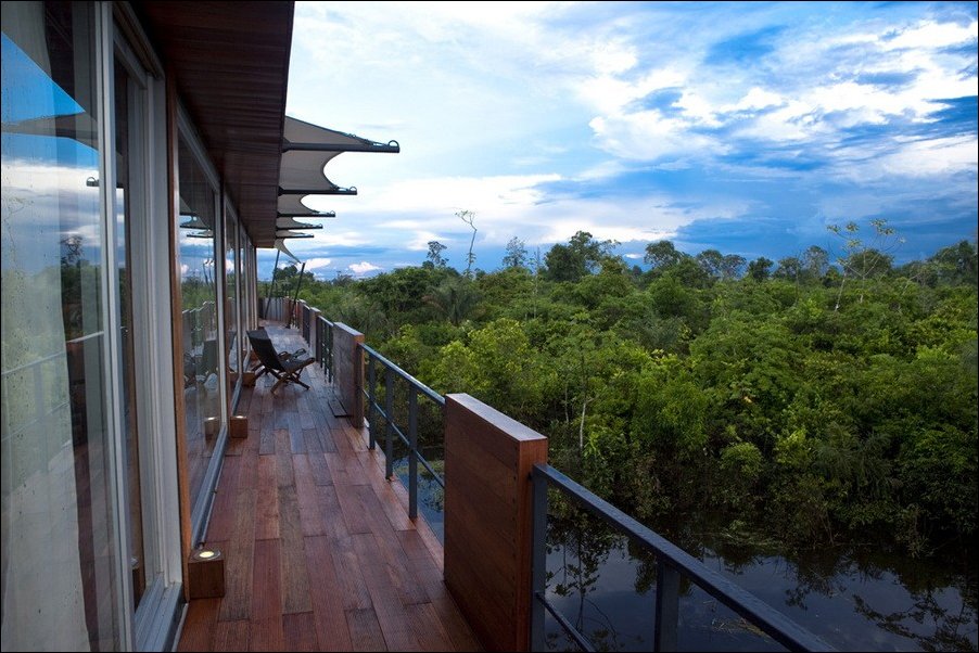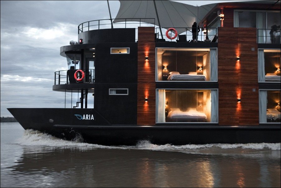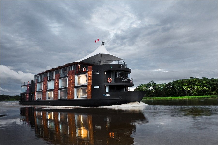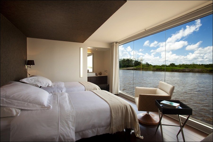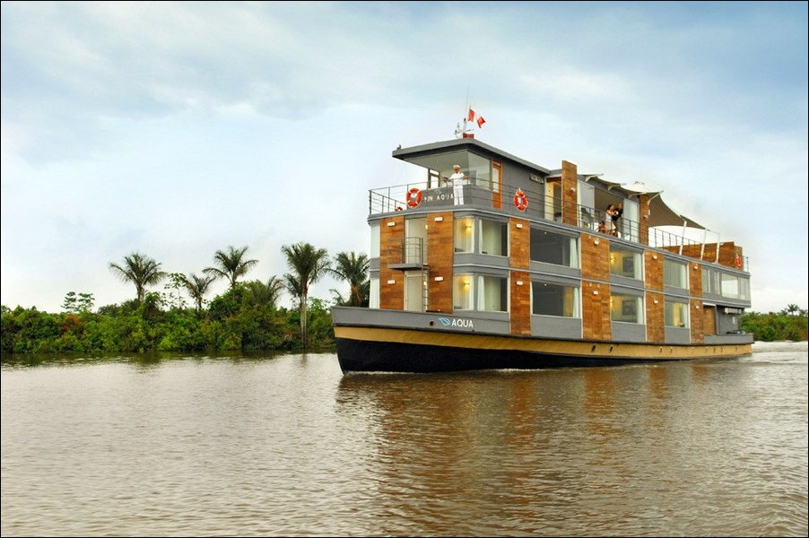 Перуанский конструктор Jordi Puig разработал шикарный плавающий отель Aqua Expeditions для круизов по Амазонке.