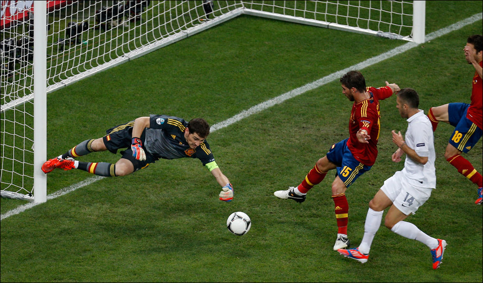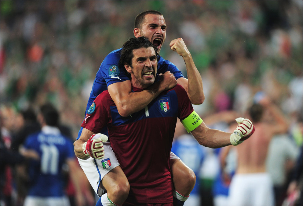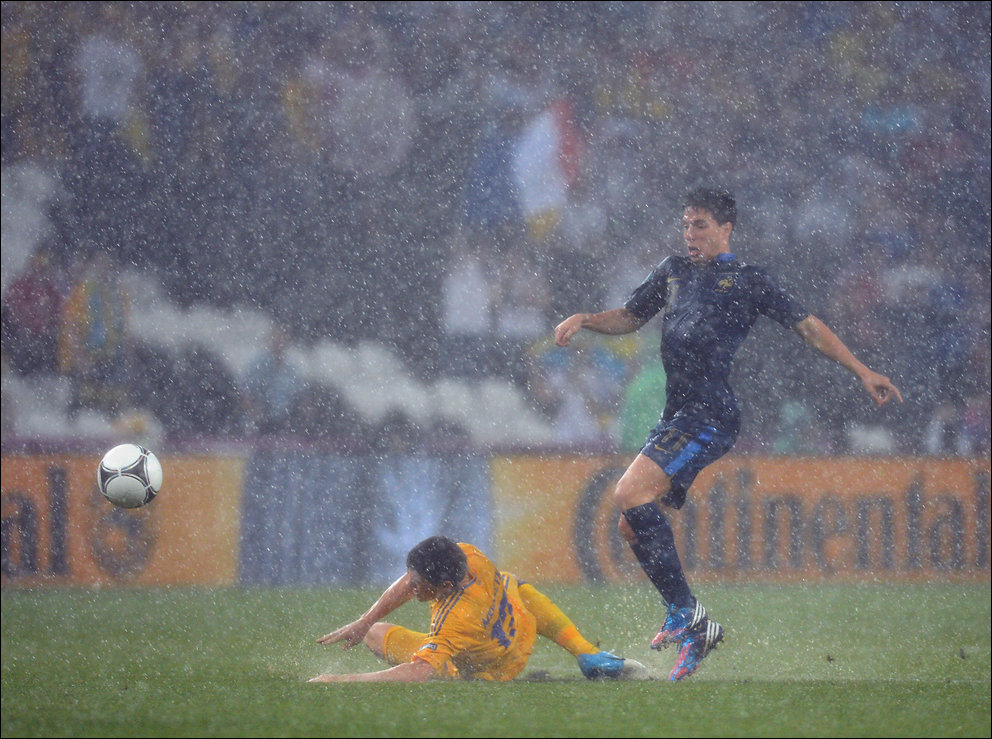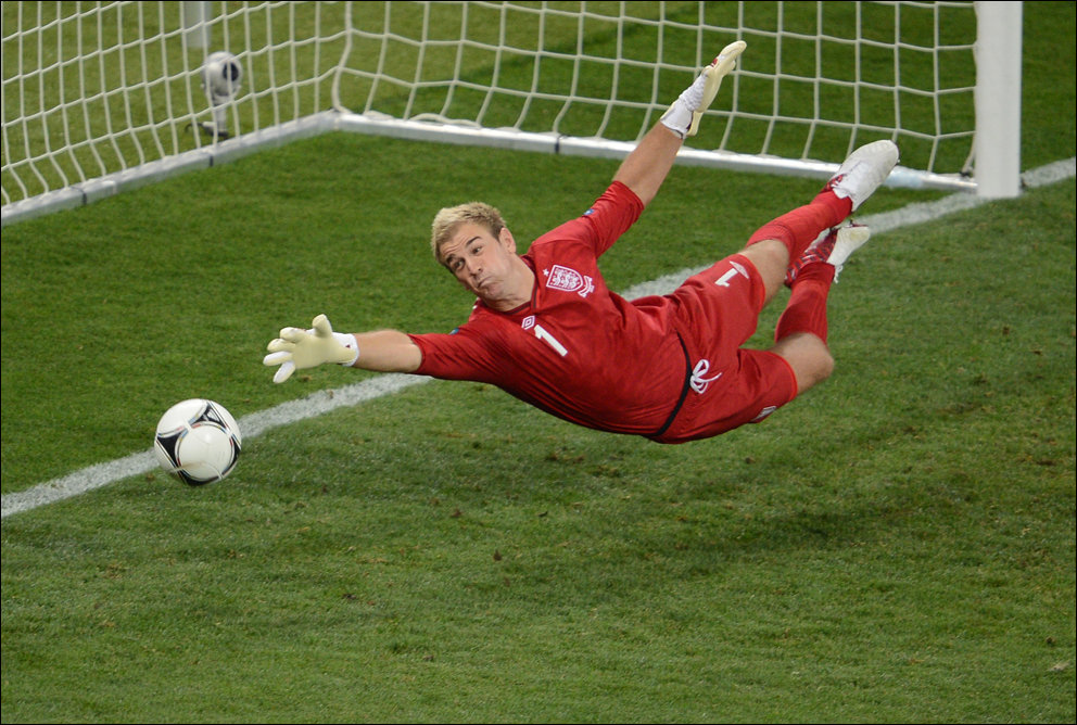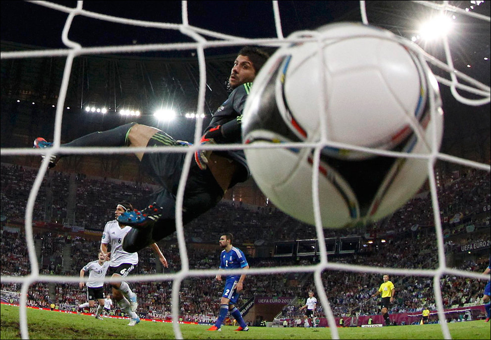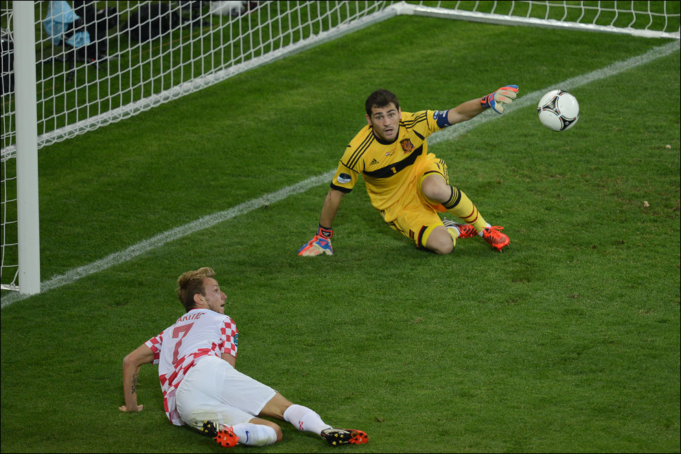 В переводе фраза звучала так: «Де Росси развернулся и кержакнул мяч мимо ворот с шести ярдов».