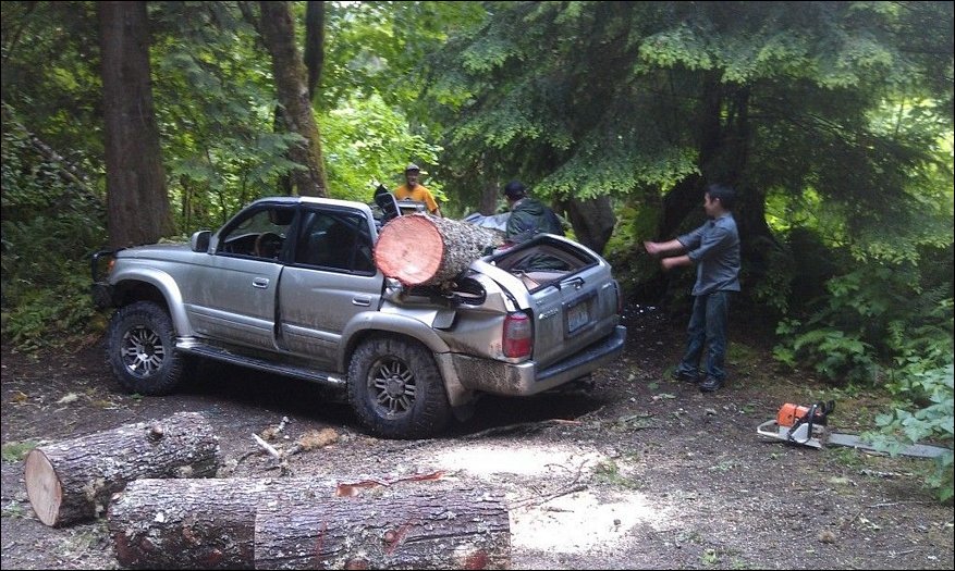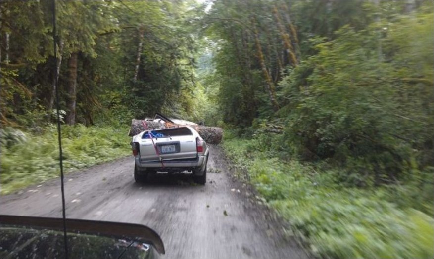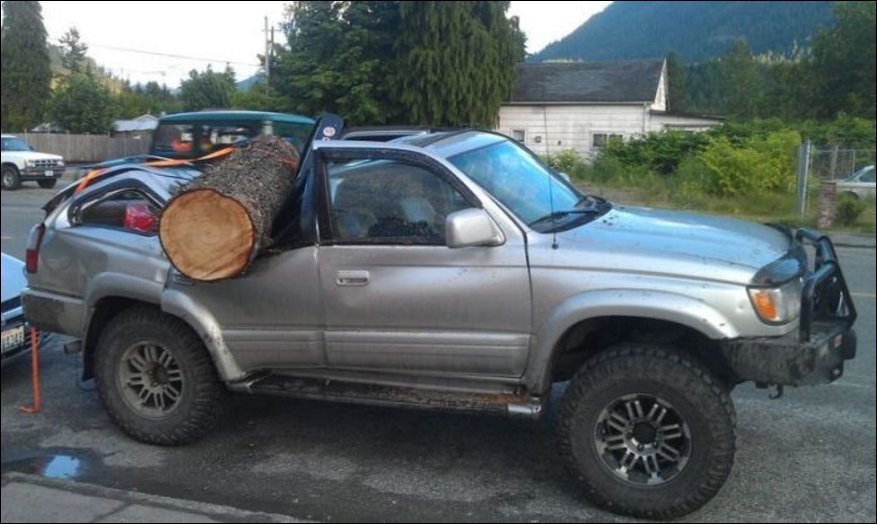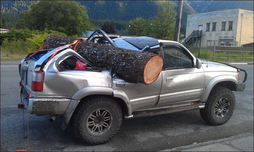 А остальными бревнами они будут кидаться в другие машины.Чтобы всем смешно было.