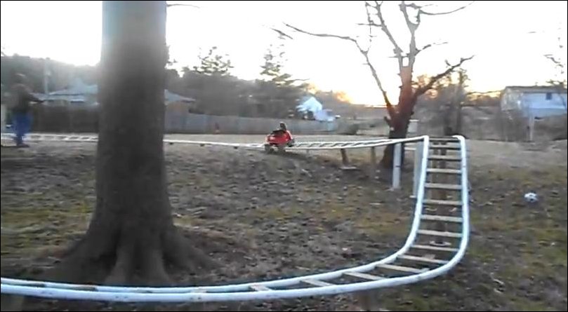 идея и исполнение достойны уважения :arrow: я бы туда еще ракетный двигатель добавил дабы упразднить людской труд(чтобы папа не заеб..вался), а по уровню топлива можно будет регулировать сколько минут-часов ребенок будет кататься :twisted: