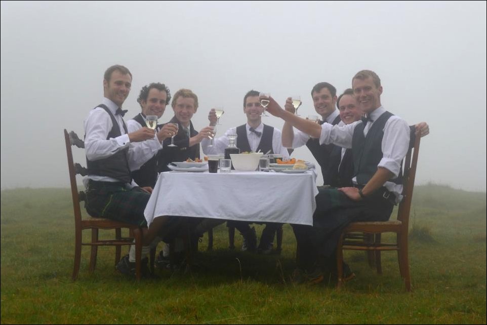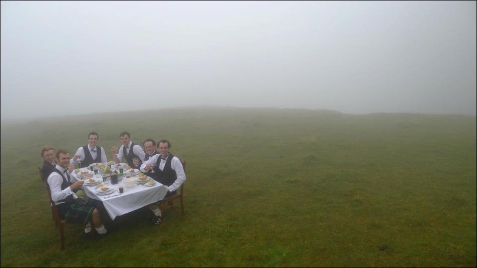 Они так не каждый день ходят… Девчонок нет потому, что парни устроили вот такой мальчишник — один из них скоро женится. Событие сие имело место на острове Скай. А туман там почти всё время, и осадки весьма часты…