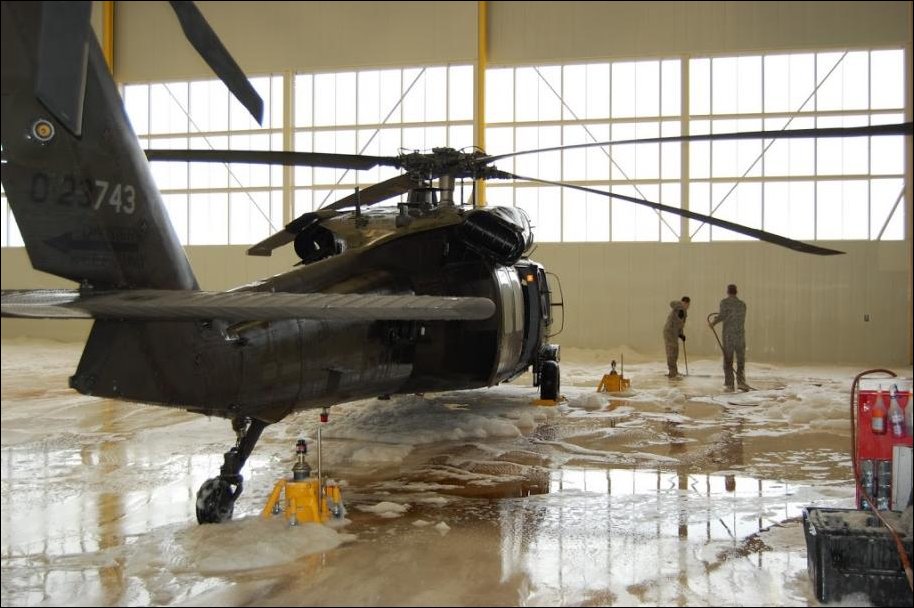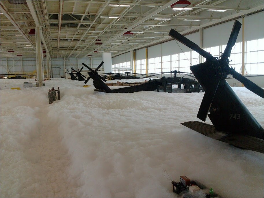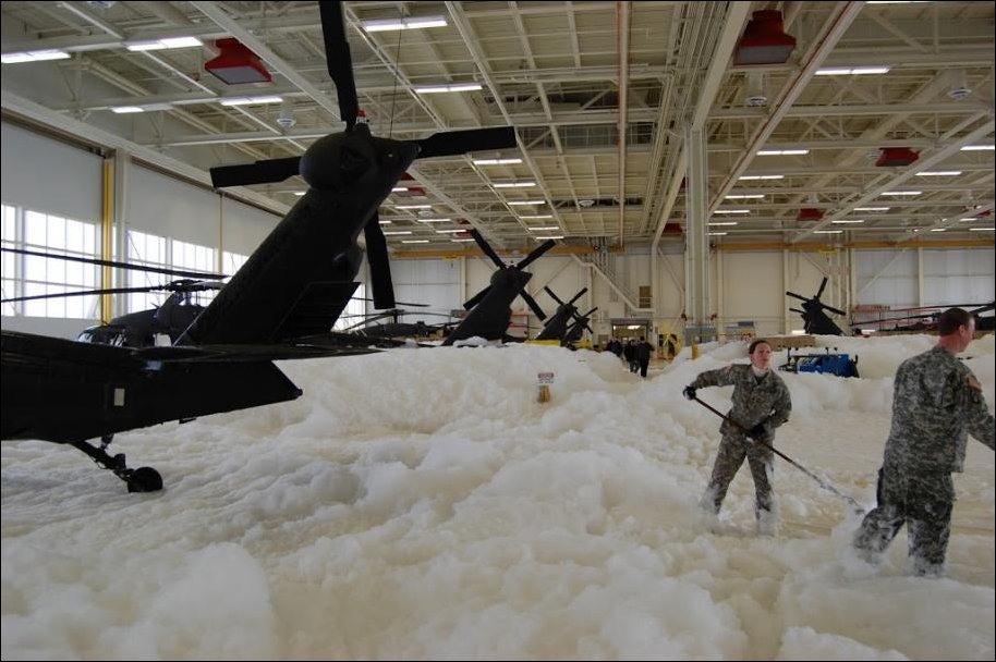 Вот что происходит когда срабатывает система пожаротушения в авиационном ангаре. Фотографии из ангара национальной гвардии США, базирующейся в штате Миннесота.