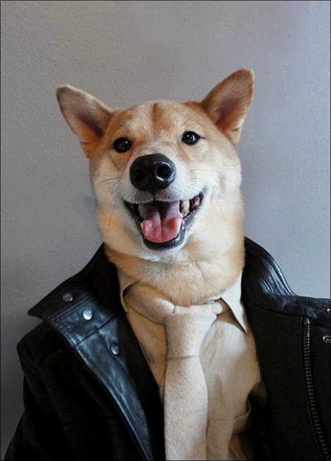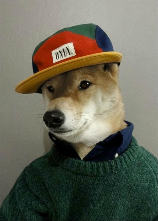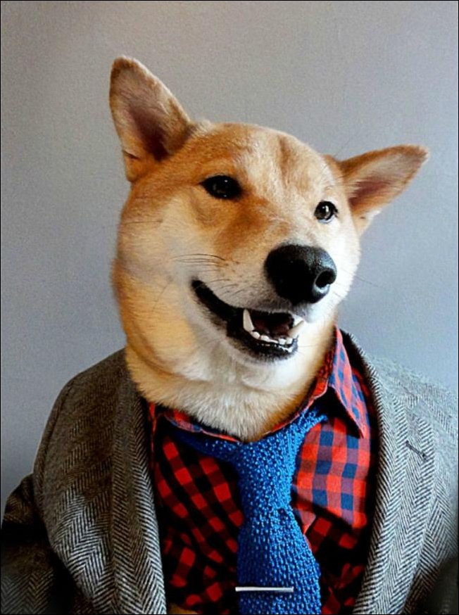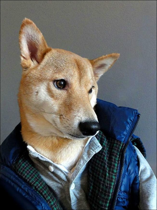 Этого стилягу совут Бодхи. Однажды его хозяева-дизайнеры ради шутки нарядили его и сфотографировали. А фото выложили в сеть.