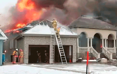 Пожарники дуралеи, лесницу не придержали. Думаю, упавшие были недовольны.