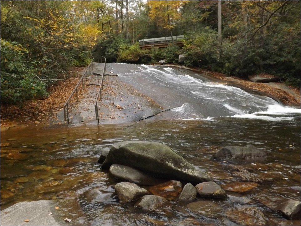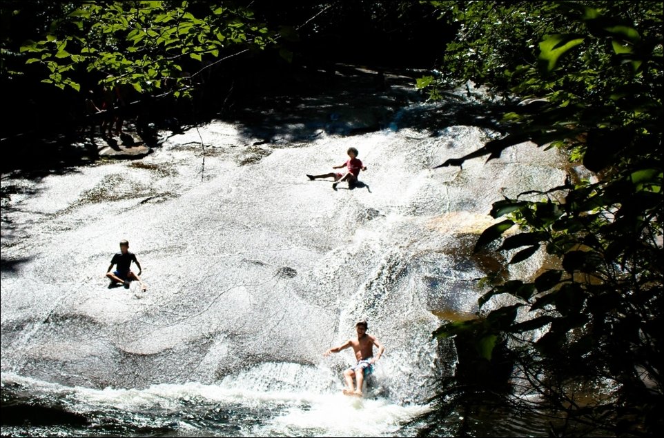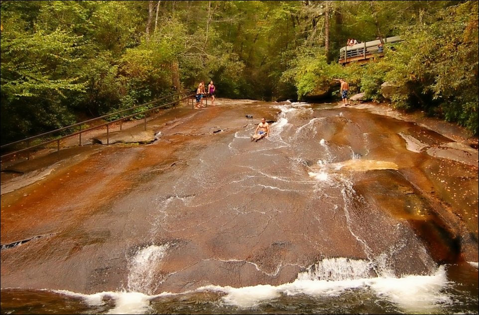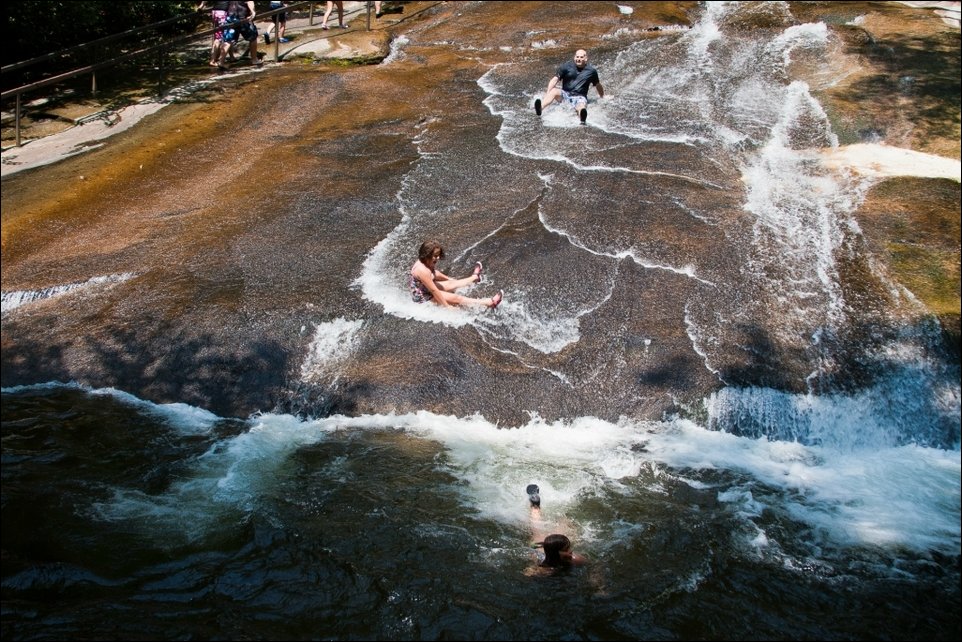 Природа подарила жителям Южной Каролины живописную водную горку, представляющую собой гладкую скалу, по которой можно скользить и нырять в природный бассейн.