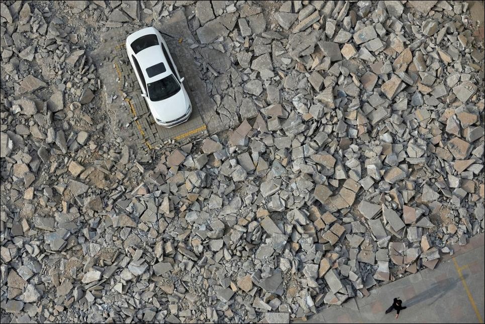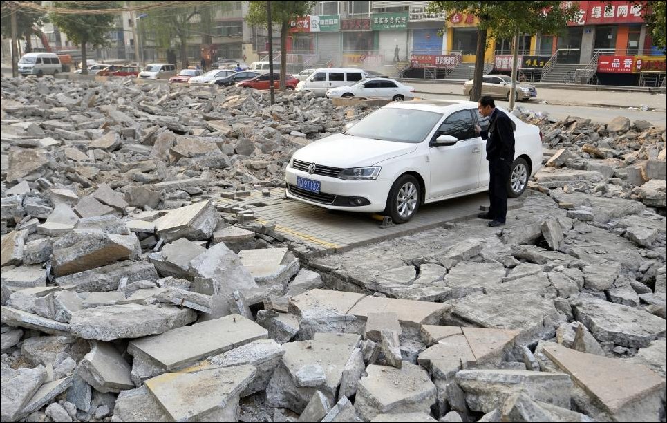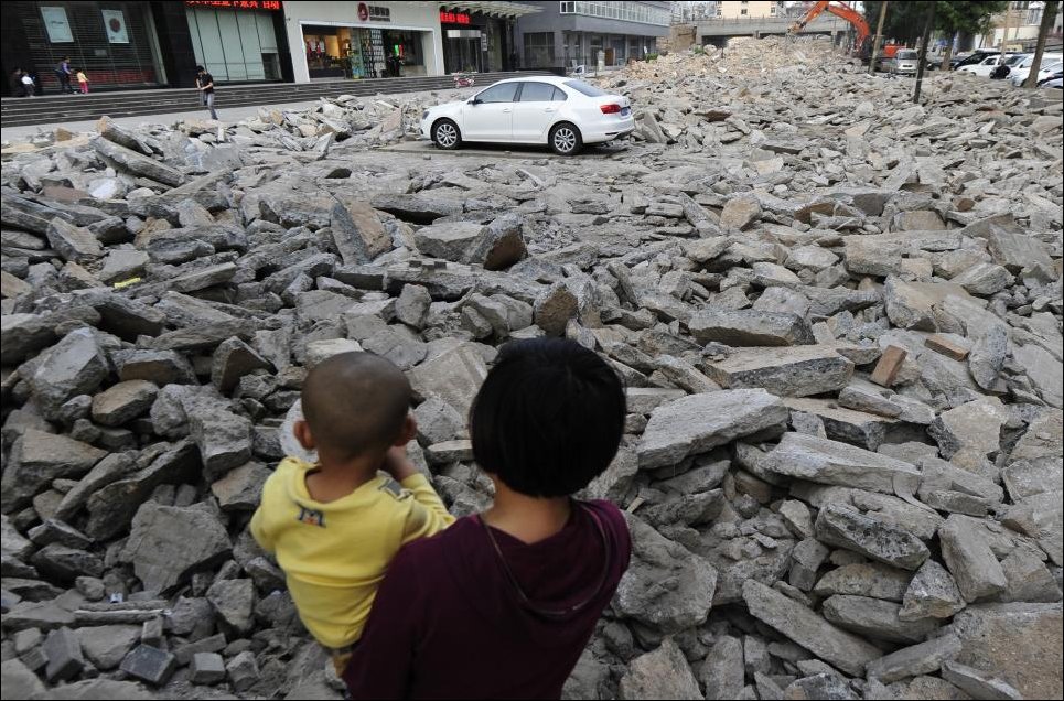 В китайском городе Тайюань происходит процесс расширения одной из улиц, для чего сносятся некоторые здания.