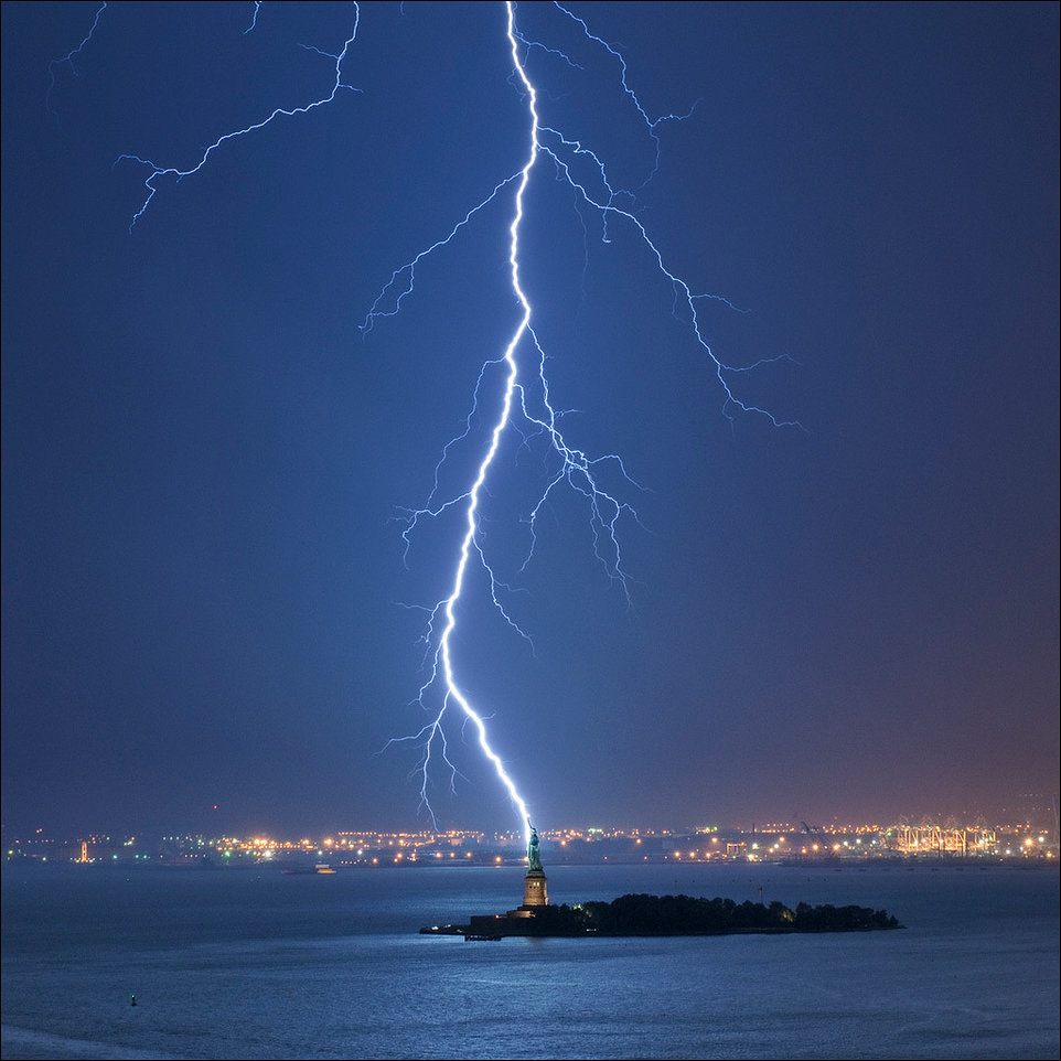 2 Молния ударяет в Статую Свободы.