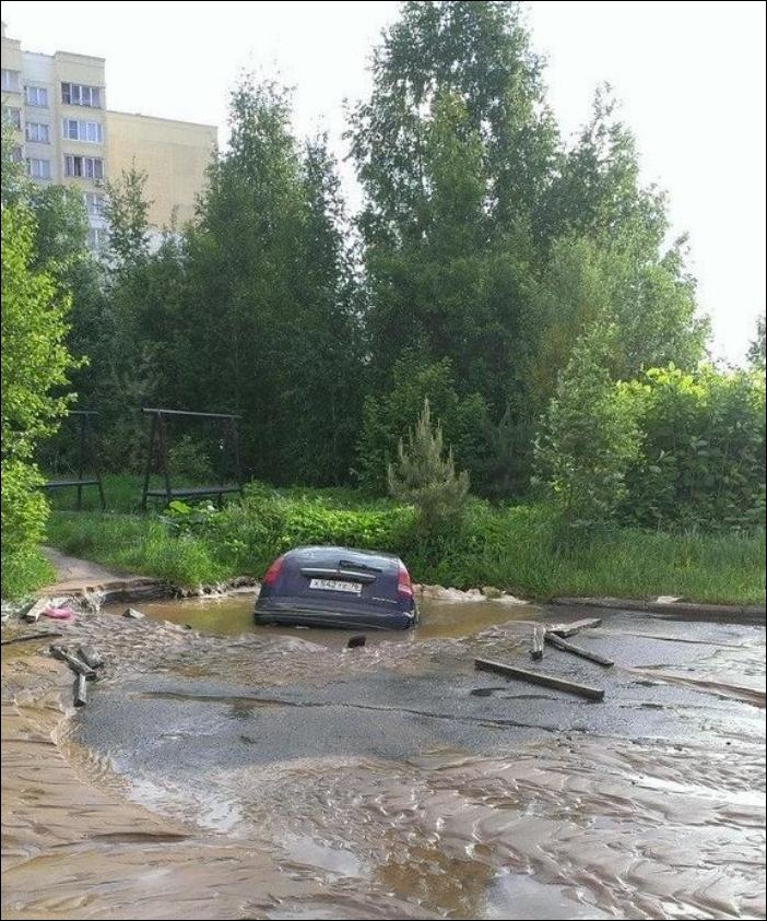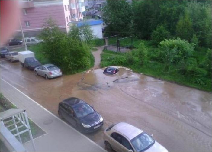 Очень просто, вчера в Ярославле был очень сильный дождь, размыло набережную, затопило центр города и ………