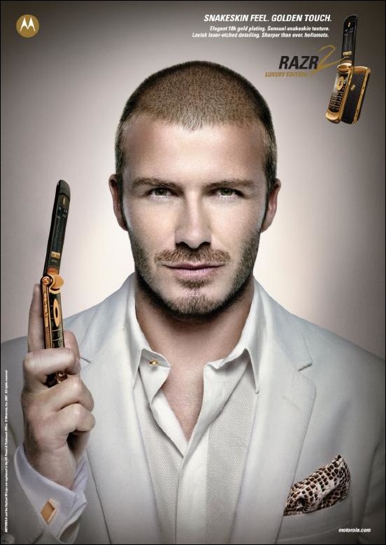 Футболист Девид Бекхем и телефоны Motorola RAZR2