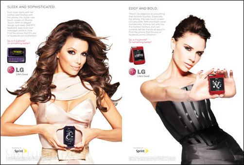 Виктория Бэкхем и Ева Лонгория и гламурные телефоны LG Lotus Elite и LG Rumor Touch.