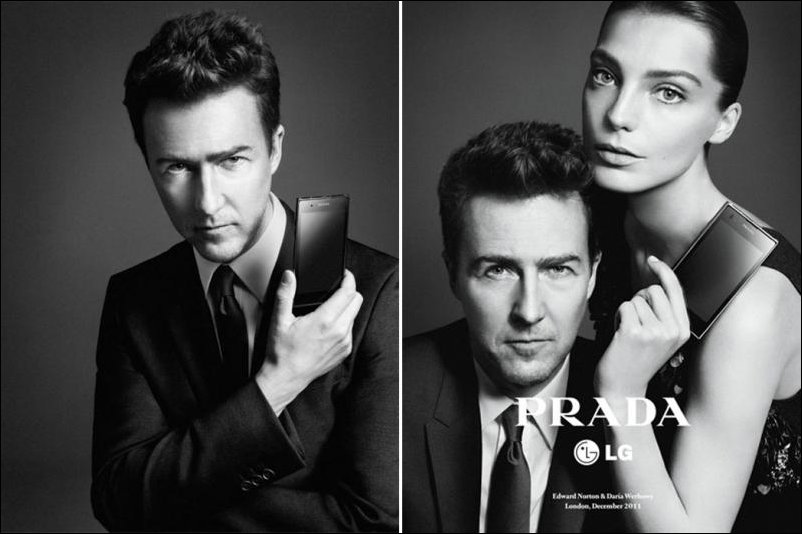 Строгий Нортон хорошо вписался в концепцию рекламной кампании: стильно, дорого, минималистично. Компанию голливудской звезде составила канадско-украинская модель Дарья Вербова. LG Prada продается до сих пор, правда его технические характеристики немного устарели – OC Android версии 2.3 и сравнительно невысокое разрешение экрана 480 на 800 точек.