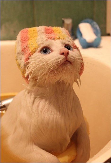 По первой фотке видно, что сам, из интереса. Но все равно и смех и грех, конечно. Лапки эти его беспомощные… Потом убежит и верить уже не будет.