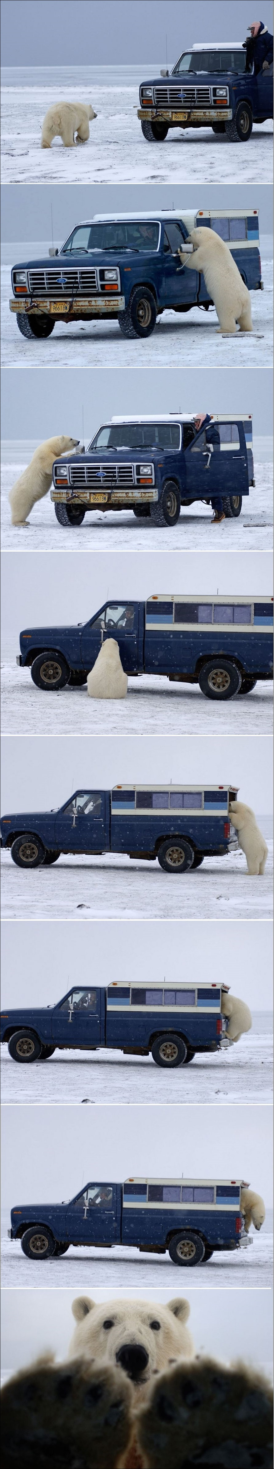 Медведь долго, с полчаса, разглядывал пикап и фотографа. Затем забрался в фургон.