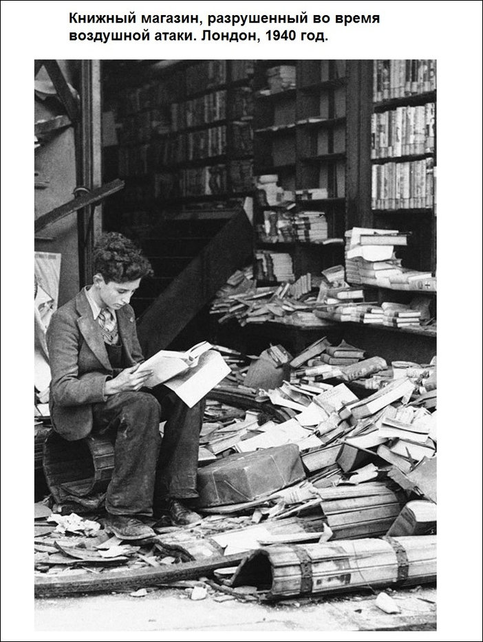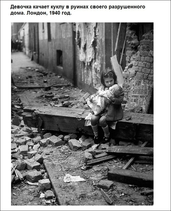 Давно меня ничто так не поражало… девочка, качающая куклу в Англии после бомбёжки вызывает слёзы, мальчик в Австрии с новыми ботиночками в 1944-ненависть, возможно наши дети в это время горели в сараях России, Белоруссии, Украины и эти сараи поджигали его близкие родственники… еврей-мальчик на руинах разрушенного книжного магазина- таки да, а кто же кроме них будет нести нам светоч знаний….водопад водки-это уже вообще шок…
