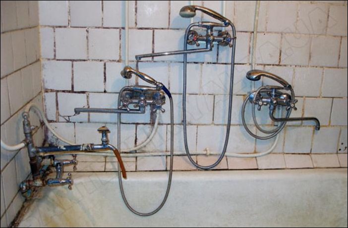 Коммунальная квартира. На четырех жильцов одна ванная комната. Холодная вода общая, а вот горячая у каждого своя.