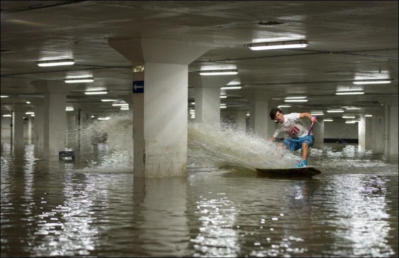 Любители адреналина оккупировали затопленную подземную автостоянку в английском графстве Суррей.