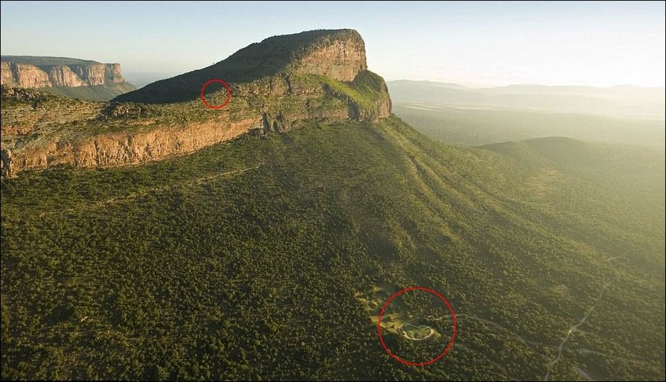 в заповедной зоне Энтабени Сафари в провинции Лимпопо. Площадка для первого удара расположена на горе Ханглип, куда можно попасть только на вертолете.