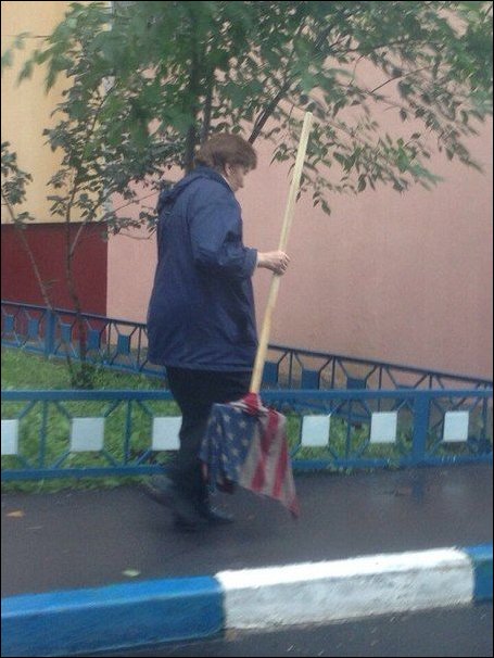 О, я знаю, что я сделаю с этим флагом! Только не говорите Путину! — басист, детина в черной майке, снимает с синтезатора российский триколор. Расстегивает ширинку и начинает запихивать флаг в трусы. Толпа ликует. Басист протаскивает триколор между ног, подтирается, достает сзади и с отвращением бросает в толпу. Народ гудит…