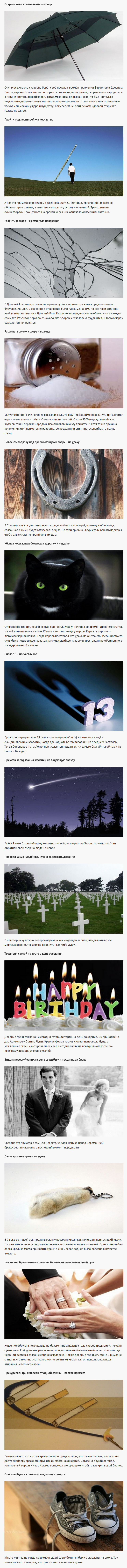В этом посте собраны истории возникновения некоторых суеверий.