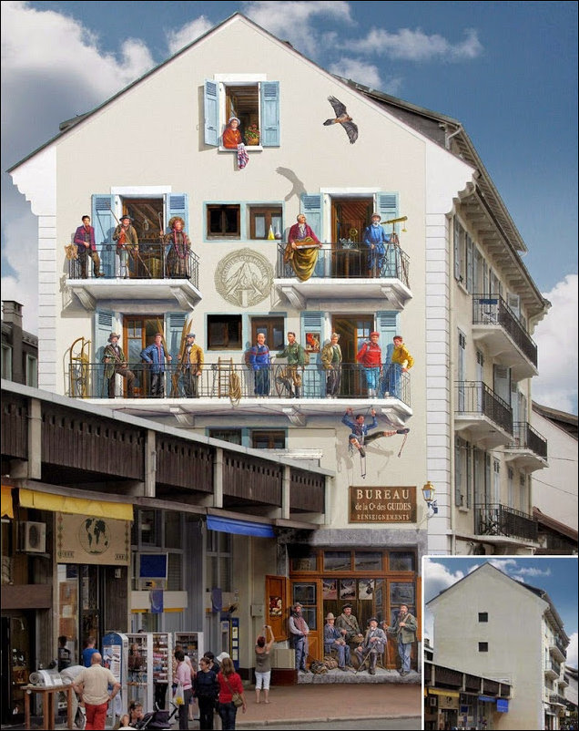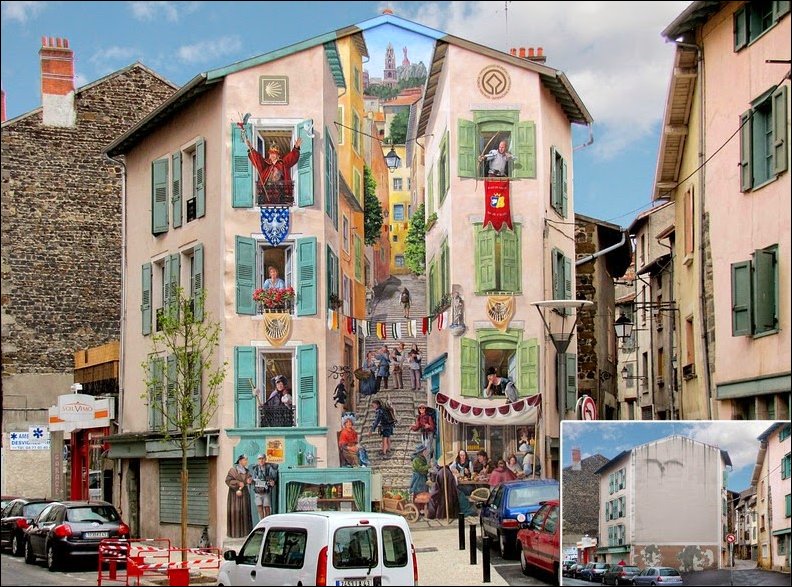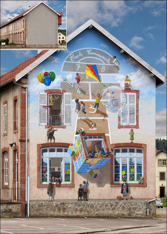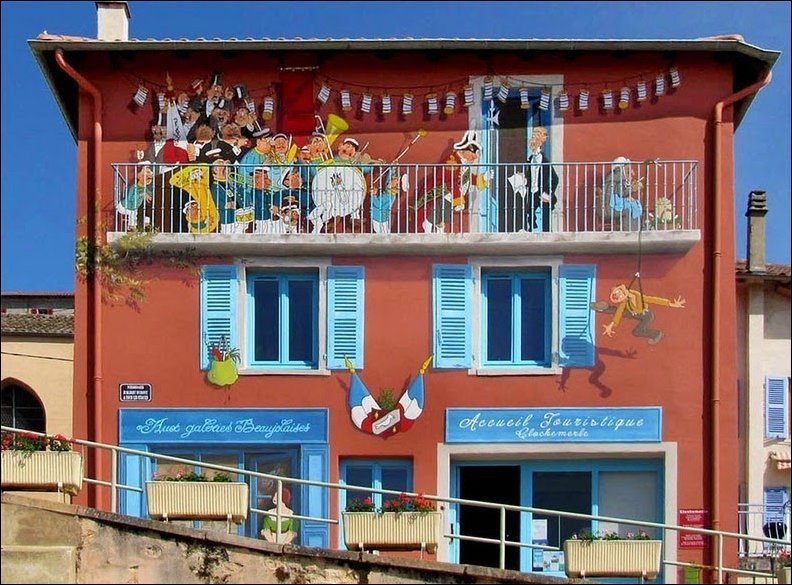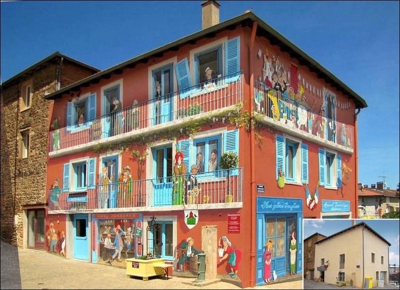 Французский художник по имени Патрик превращает унылые и скучные фасады домов в яркие сцены, полные жизни.
