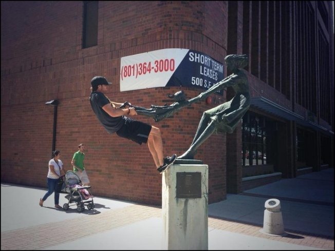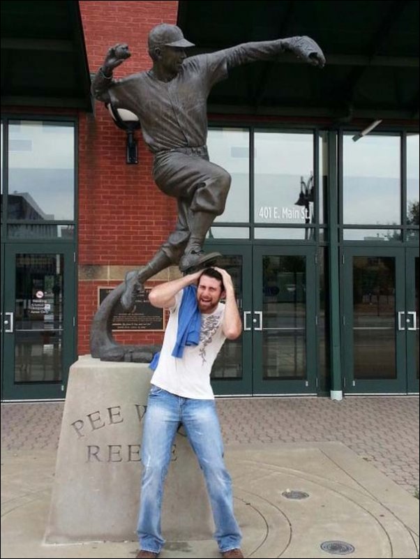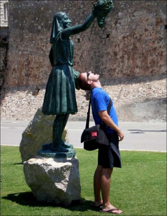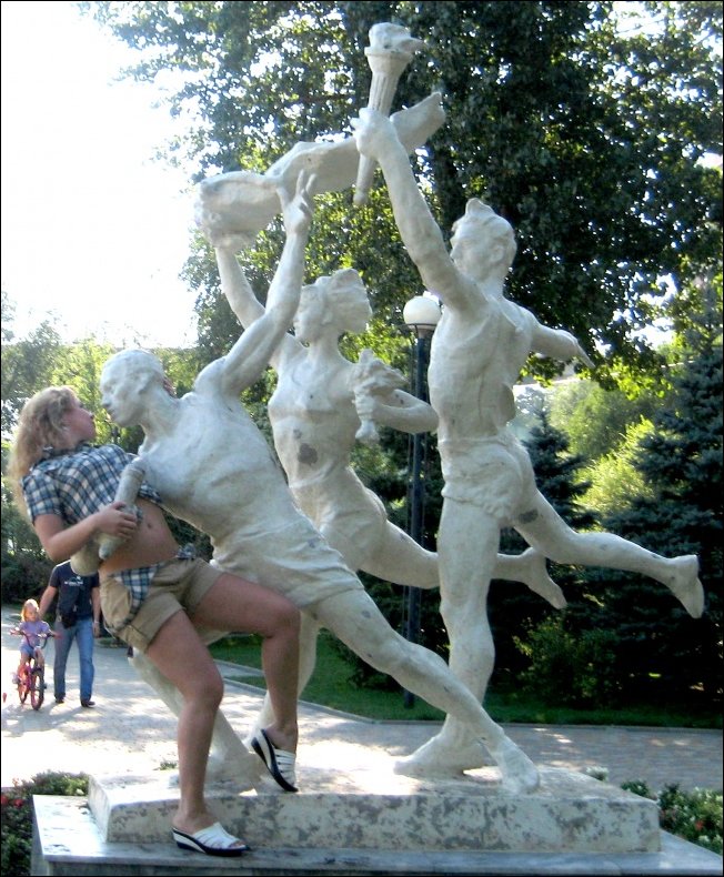 Некоторые изваяния спецом поставлены для таких «игр». Тут памятников мало на самом деле.