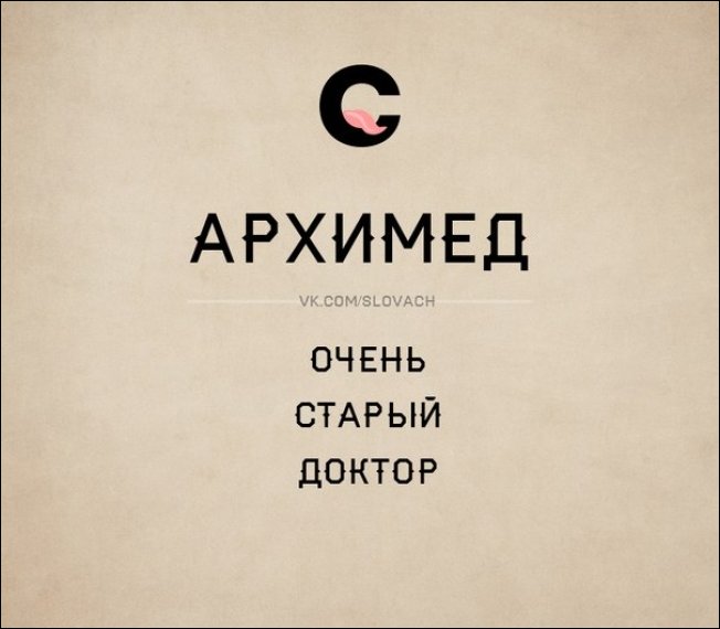 Архимед- это очень старый доктор, тогда получается, что архангел- это очень старый ангел? :lol: