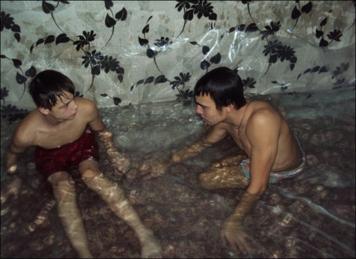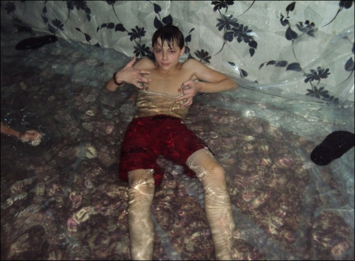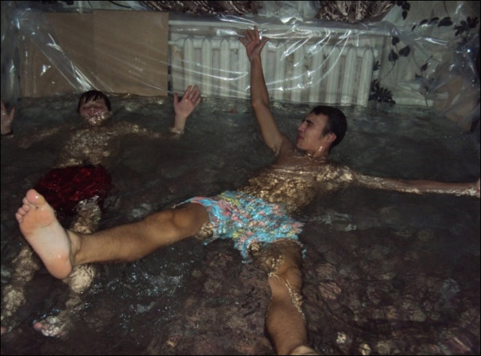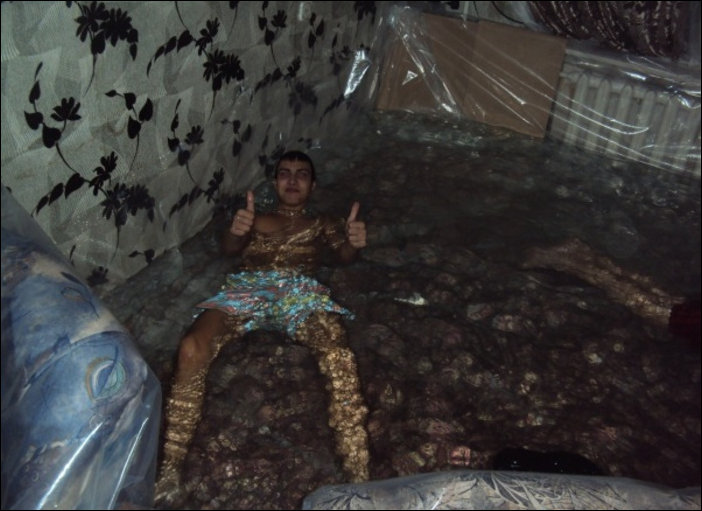 Ребята при помощи обычной пленки соорудили в квартире бассейн.