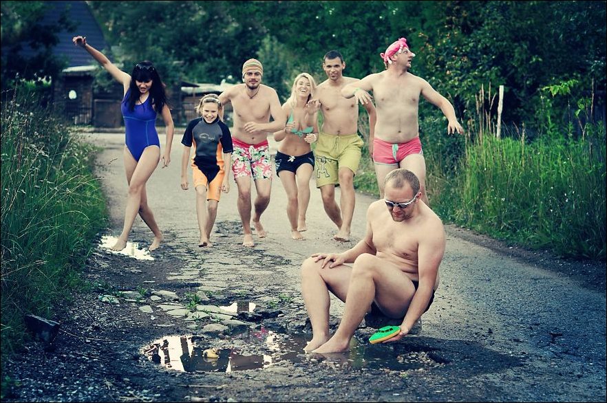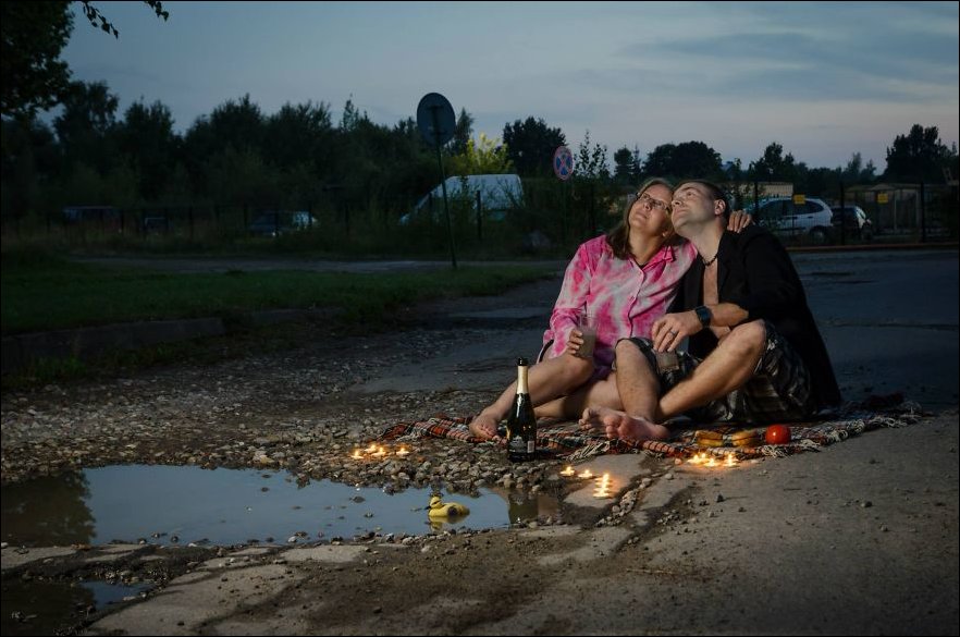 Только сделали они это необычным способом — ребята устроили фотосессию вокруг выбоины в Каунасе.