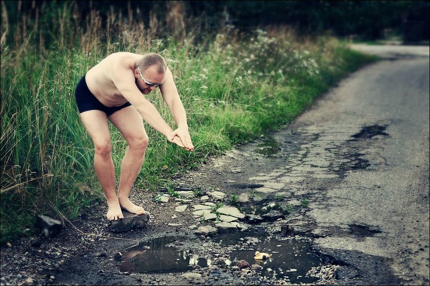 Веселая группа друзей решила привлечь внимание властей к проблеме плохого состояния литовских дорог.