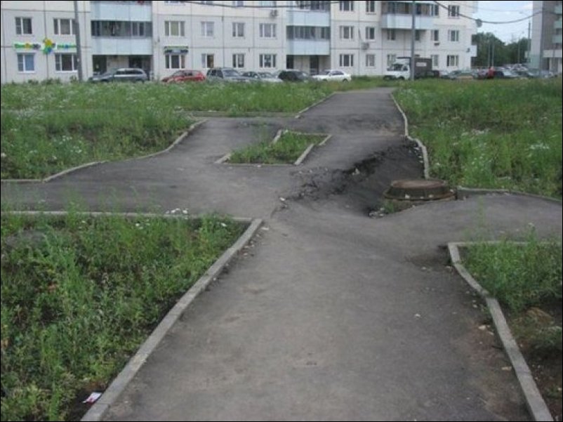 3.03. Убедили заказчика, что нам нужен еще день для финального тестирования. М-да, ну мы вчера и наработали… А в общем, не все так страшно. Hу что с того, что некоторые двери находятся в полу или в потолке, либо ведут с десятого этажа прямиком на улицу, в некоторые квартиры в принципе невозможно попасть, санузел кое-где совмещен с кухней, в половине дома нет воды, в другой половине — электричества, канализация обрывается на шестом этаже, а лестницу между восьмым и девятым пришлось сделать веревочной? Главное — провести заказчика правильным маршрутом. И еще — успеть до завтра развесить на месте исчезнувших окон картинки с изображением заоконных пейзажей…