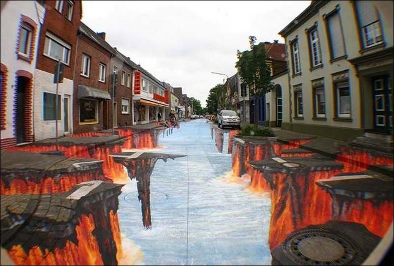 Удивительные объемные рисунки на асфальте.