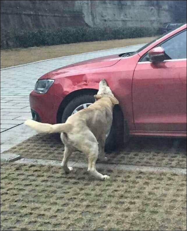 Китайский автолюбитель обнаружил бродячую собаку, лежащую на его парковочном месте. Разозлившись, он вышел из машины и прогнал ее пинками. Через некоторое время собака вернулась. И не одна, а вместе с товарищами. Стая друзей набросилась на машину обидчика и погрызла везде где смогла. Утром приунывший владелец машины осматривал повреждения, не понимая откуда они взялись. Но тут вышел сосед и показал эти фотографии.