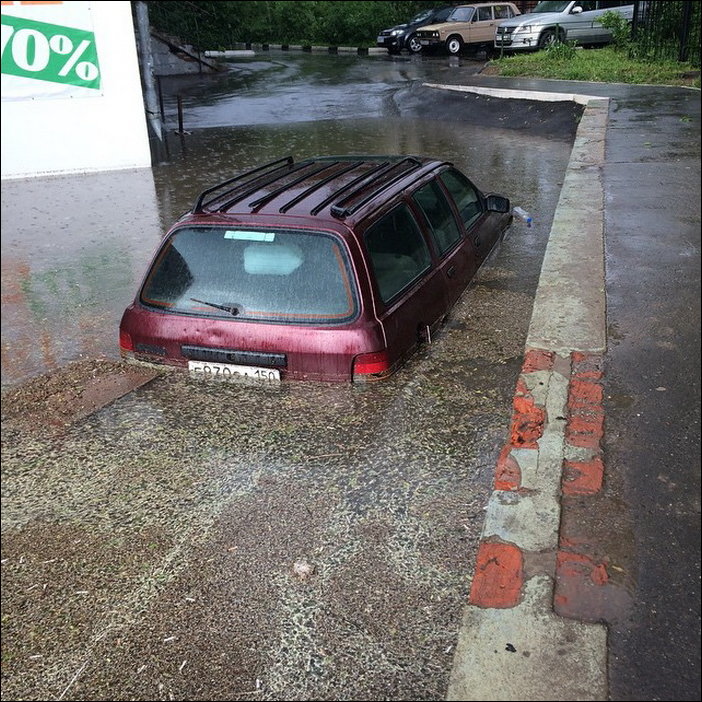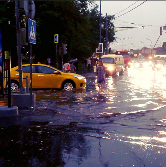 В пятницу 29 мая на Москву обрушился тропический ливень с ураганным ветром и градом размером с яйцо. На дорогах возникло наводнение, ветер повалил десятки деревьев в разных районах города. В аэропортах задерживались десятки рейсов. По сообщениям очевидцев, в подмосковном Жуковском град шел сплошной стеной на протяжении двадцати минут.