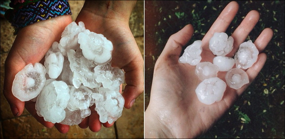 А у нас сегодня град… но по два сантиметра… но сегодня,