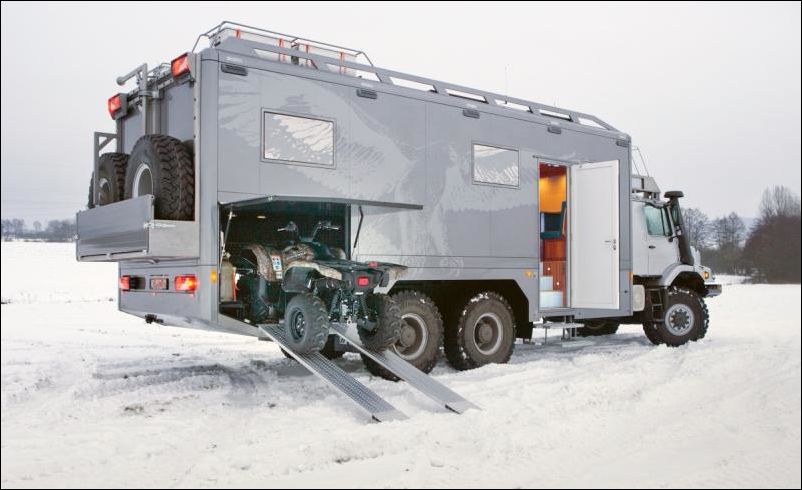 Автодом Mercedes Zetros 2733 A 6×6 предназначен для работы в условиях экстремального бездорожья. Можно смело отправляться куда угодно с максимальным комфортом.