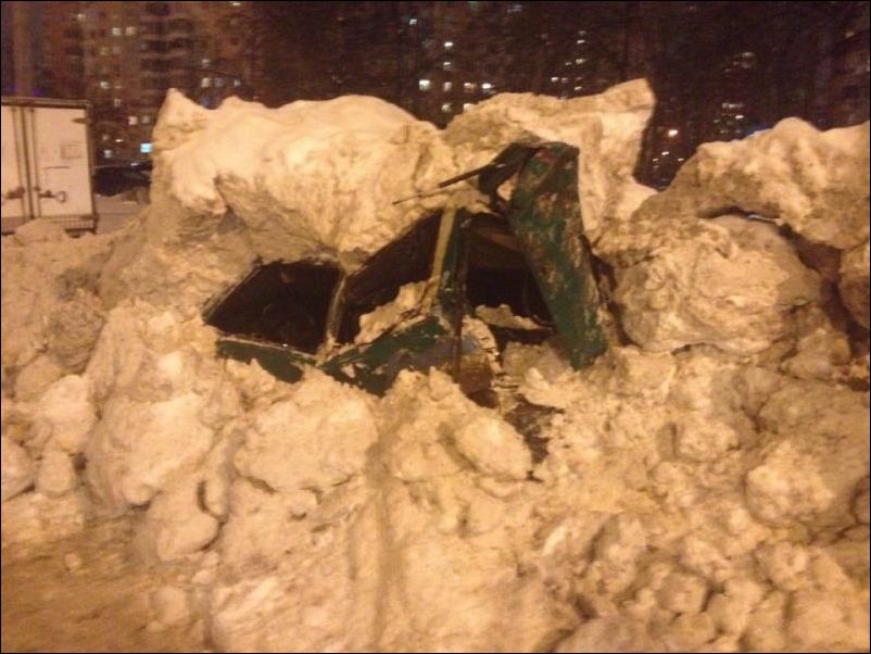 Трактор приехал убирать сугроб, копнул ковшом, а там как бы автомобиль.