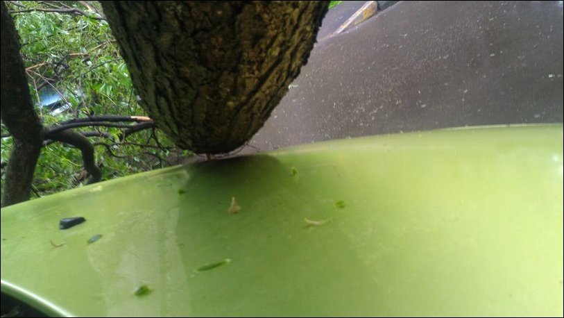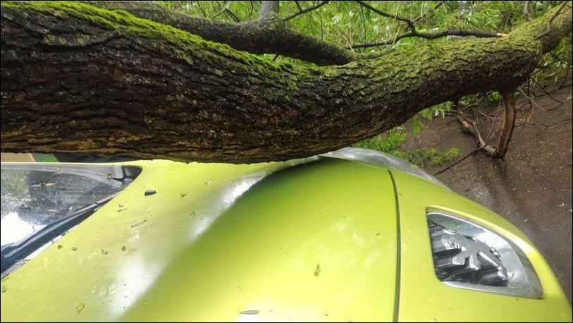 Можно представить себе радость автовладельца, когда он осознал, что дерево, накрывшее его автомобиль, не причинило машине никакого ущерба.