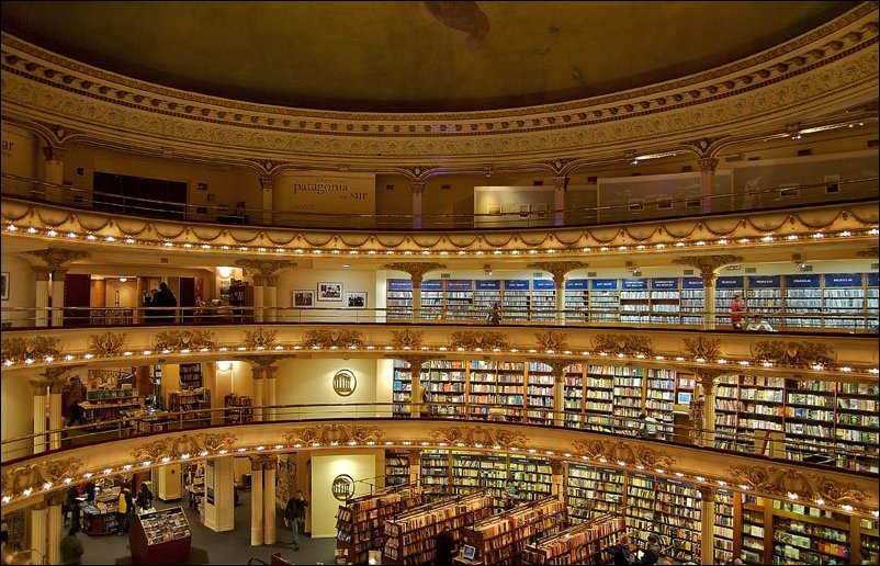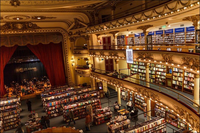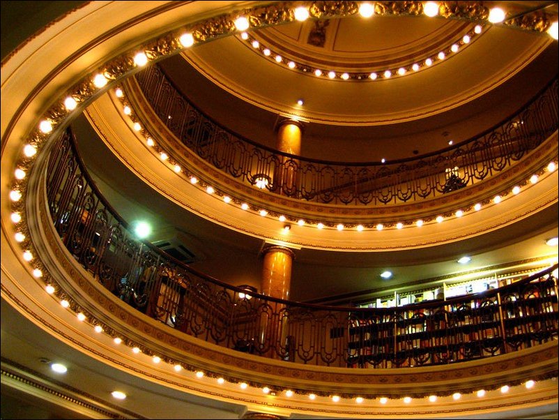 В Буэнос-Айрес работает один из самых красивых книжных магазинов в мире. Расположен он в здании бывшего театра, построенного 100 лет назад.