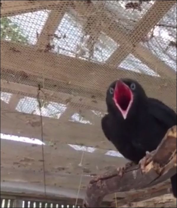 Птица издает смешные звуки «ням-ням-ням» :)