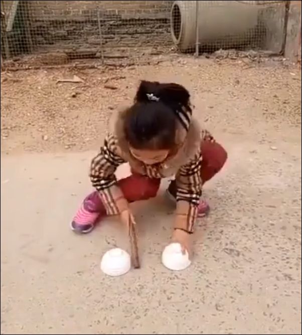 Да нее, тут проще. Она эти штуки всегда берет сначала левой рукой, а потом делает вид, что перекладывает в правую, а левой потом кладет под миску