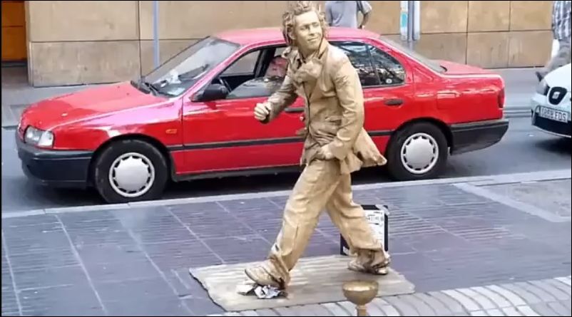 Живая скульптура на бульваре Las Ramblas в Барселоне.
