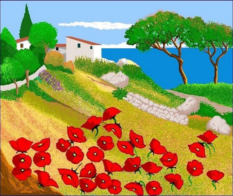 87-летняя испанка Конча Гарсия Заера публикует в социальных сетях картины, написанные в редакторе Paint. Увлечение рисованием появилось у Заеры примерно 12 лет назад, когда дети подарили ей компьютер. В то время она присматривала за больным мужем и находилась все время рядом. Тогда и появилось желание освоить новое хобби. На рисунок у нее уходит около двух недель.