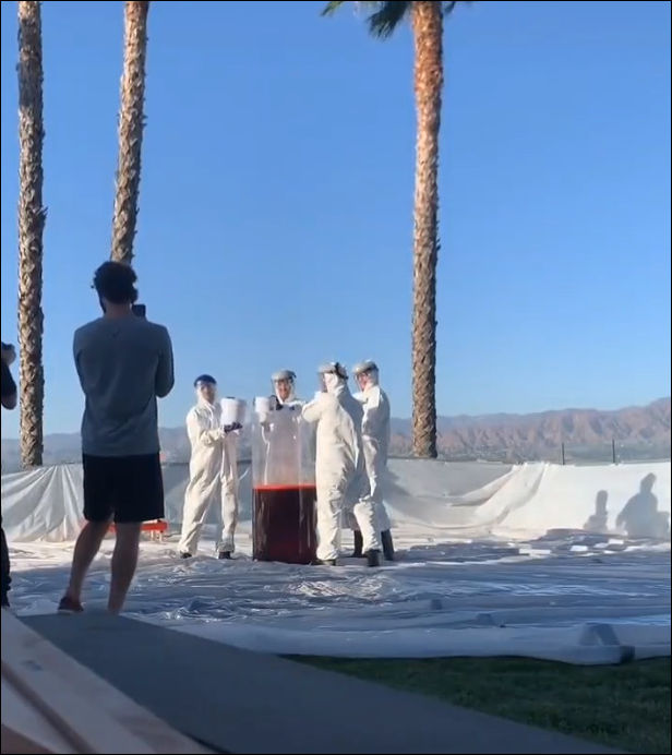 Никакого, кроме того, что сию химическую реакцию когда-то учёные открыли. А это действо к науке не имеет отношения, если б не пальмы, то я подумал бы, что это «английские учёные» «эксперимент» проводят.