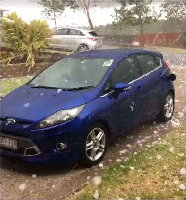 Или у них стекла на авто более прочные, или град какой-то мягкий.