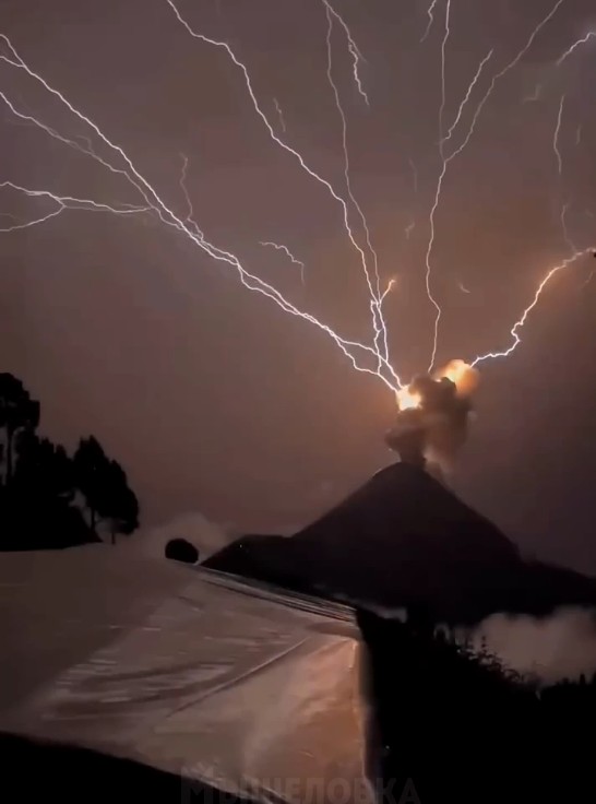 вулкана de Fuego — молнии били прямо в жерло!