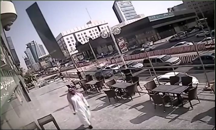 Ужасное видео сняла камера наружного наблюдения в Саудовской Аравии. Гражданин едва не угодил под падающее оконное стекло — оно рухнуло на тротуар всего в нескольких сантиметрах — араб остался жив и даже цел.